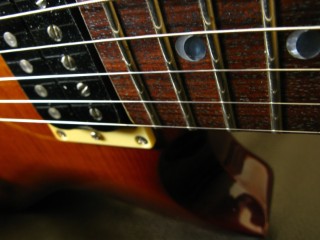Mehrere Wochen probierte ich mit ihr herum und war immer mehr vom Wide Fat Hals Profil begeistert. Auch die Intonation ließ sich mit der Wrap Around Alu Bridge unproblematisch und gut